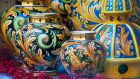 Lavorazione di ceramiche artistiche in laboratorio con vari colori e...